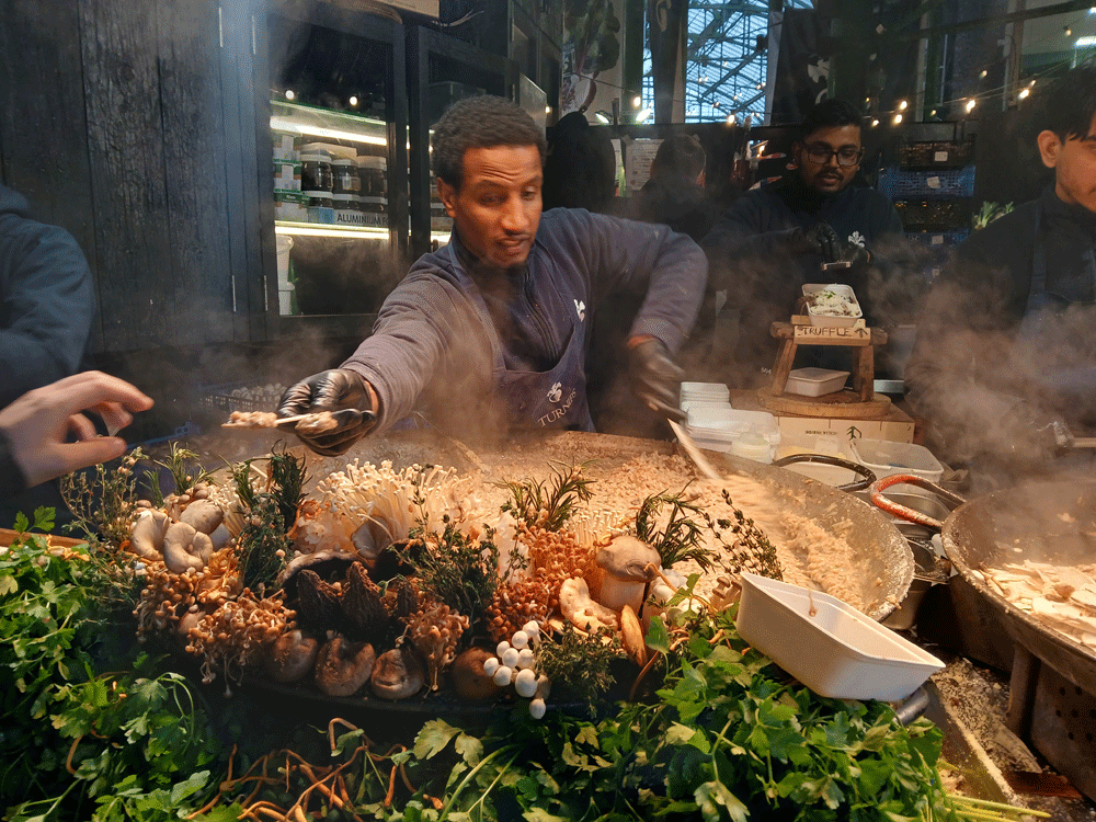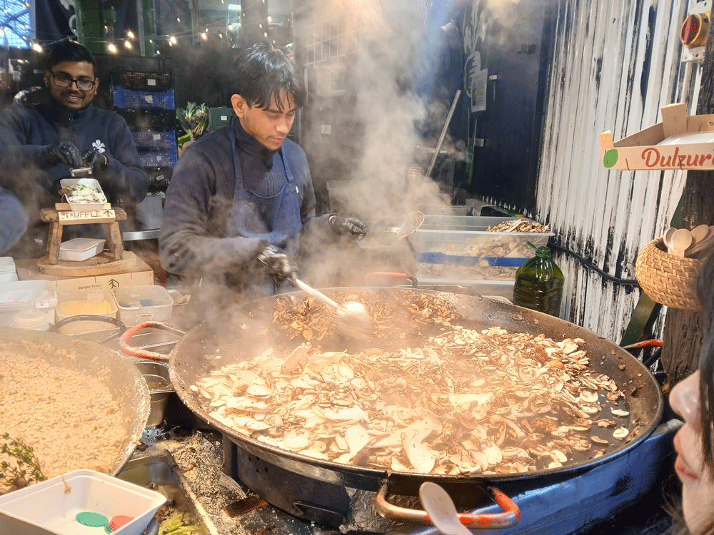 Il Borough Market (fermata London Bridge sulla Jubilee Line) è il mercato comunale del distretto di Southwark, ed è considerato uno dei più grandi al mondo. L’arrivo è come una secchiata d’acqua fredda in faccia, perché si entra all’improvviso in un caos di colori, suoni, rumori e corpi che scivolano tra gli stand pieni zeppi di cibo di ogni provenienza geografica, mentre sopra le nostre teste sfrecciano i treni della London Bridge Station diretti a nord-est, verso Liverpool, Birmingham e Bath, scatenando rumori di ferraglie. Ortaggi, verdure, funghi, formaggi, si alternano a dolci, torte rustiche, hotdog, in un potpourri di grida e voci che si sovrappongono. Impossibile non cedere al fascino di questo luogo, dove rischierete di trascorrere tutto il pomeriggio ritrovando davvero la Londra più autentica.