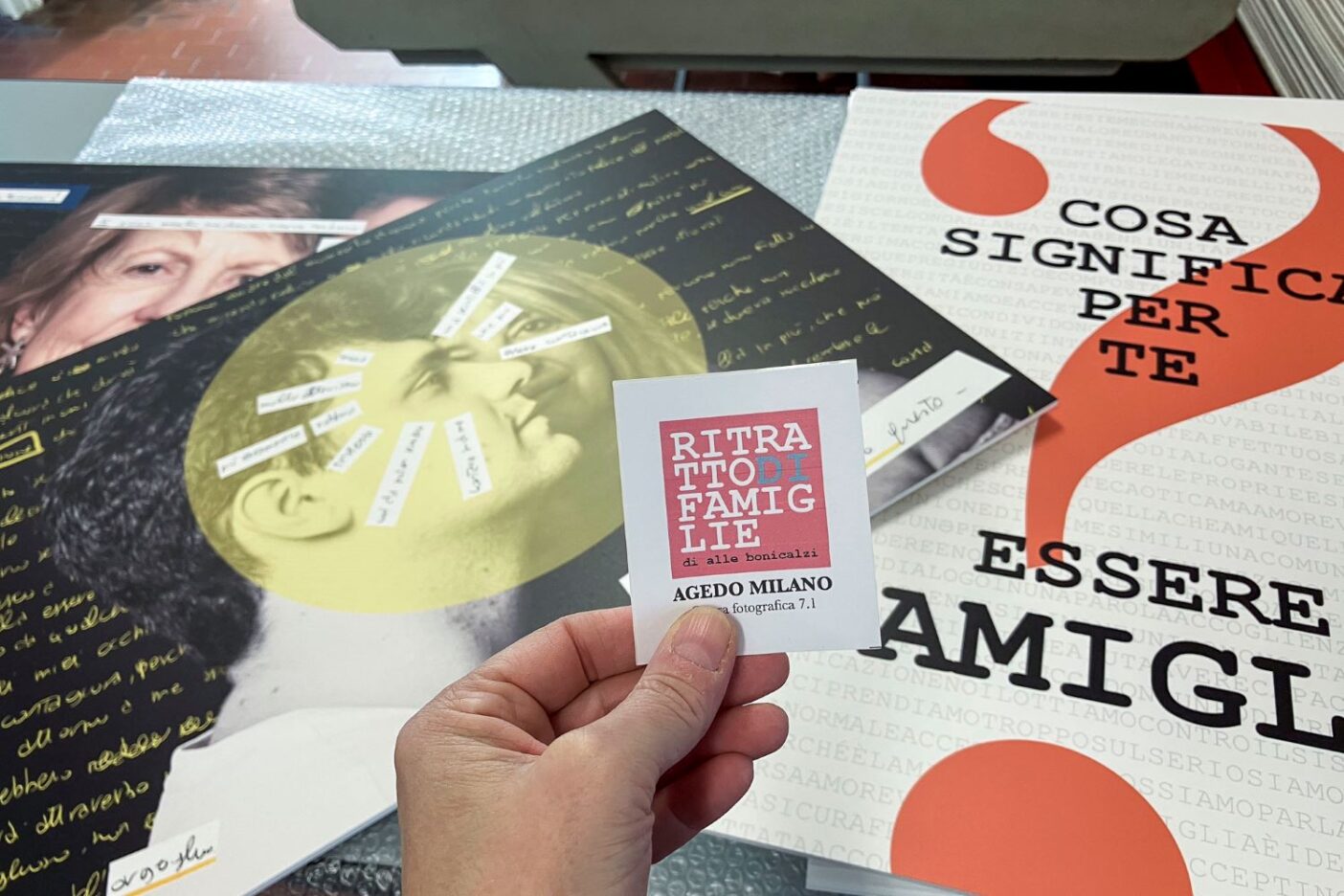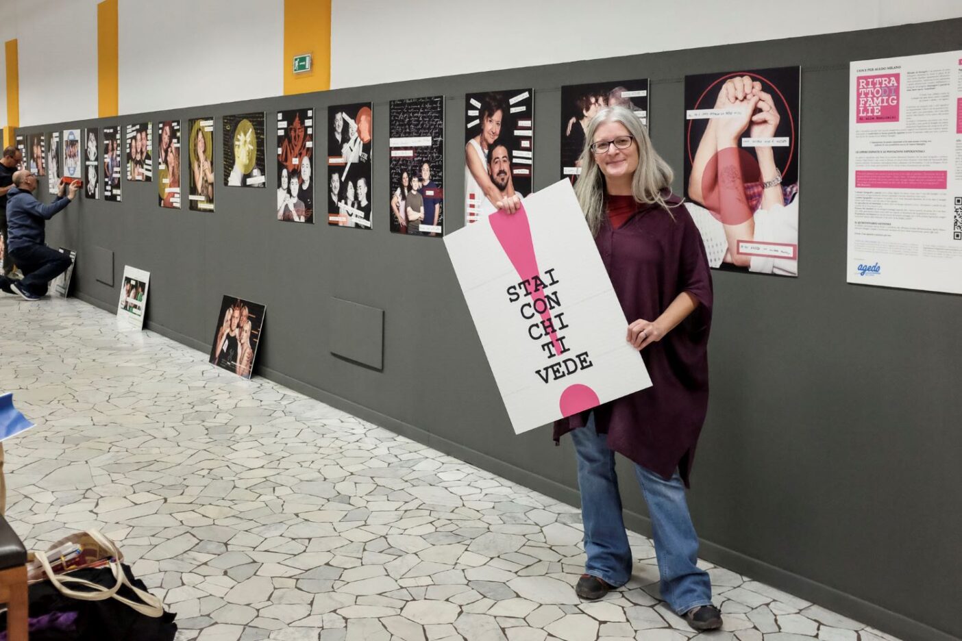 Si tratta della mostra conclusiva di un percorso compiuto da Alle insieme e grazie all’Associazione Agedo Milano, l’associazione di genitori, parenti, amici e amiche di persone LGBTQIA+, che ha voluto valorizzare le famiglie coinvolte. L’idea nasce della Presidente, Cinzia Valentini: fare un’esposizione fotografica che permettesse una sorta di coming out collettivo delle famiglie Agedo, perché divenissero testimoni di una situazione condivisa e fossero d’ispirazione e supporto per altre persone e famiglie che dovessero confrontarsi con il coming out della propria figlia o del proprio figlio, e con tutto ciò che avrebbe potuto determinare questa situazione per i genitori: preoccupazioni, dubbi, domande, scoperte e battaglie per i diritti.