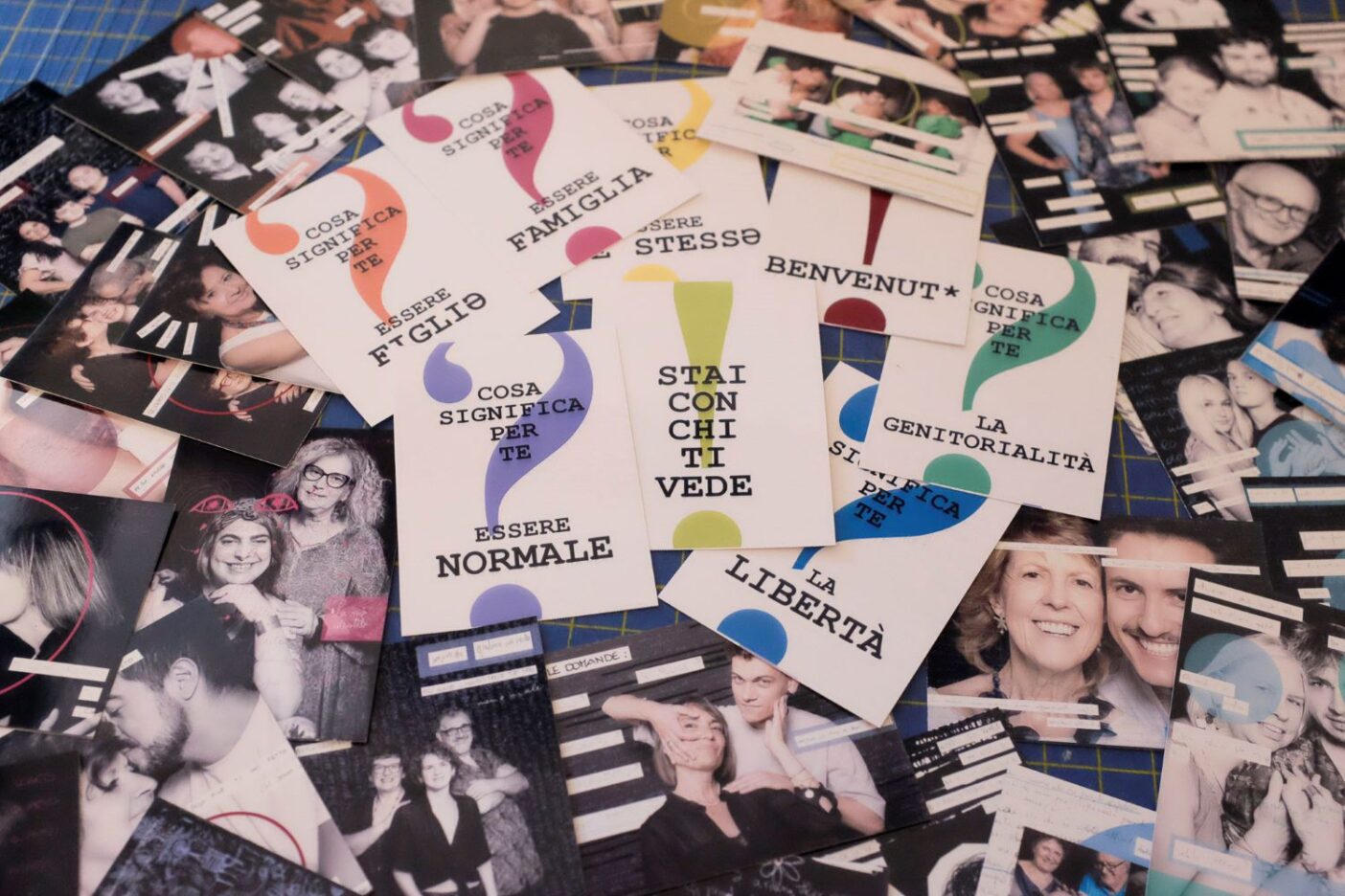 Non solo. Infatti abbiamo deciso che fosse importante anche per il pubblico vivere un’esperienza più articolata della semplice visione di qualcosa di esposto. Per questo, accanto alle opere in mixed media (ossia i collage digitali di parole e fotografie) vi sono anche delle opere tipografiche che riportano domande alle quali l’associazione stessa ha risposto e che interrogano (volendo) chi venisse in visita alla mostra. «Che cosa significa, per te, essere genitore o genitrice (se lo sei)?» Ma anche «che cos’è per te la libertà o che cosa significa essere normale» Domande dirette ma di non facile soluzione o, comunque, non univoca. Inoltre, a corredo dell’esperienza fotografica e filosofica, vi sono anche alcune postazioni interattive che propongono ai visitatori di partecipare ancora di più alla riflessione che l’ha generata, ossia di mettersi in gioco in prima persona rispetto al proprio concetto di famiglia, ma anche di cura e di riconoscimento.