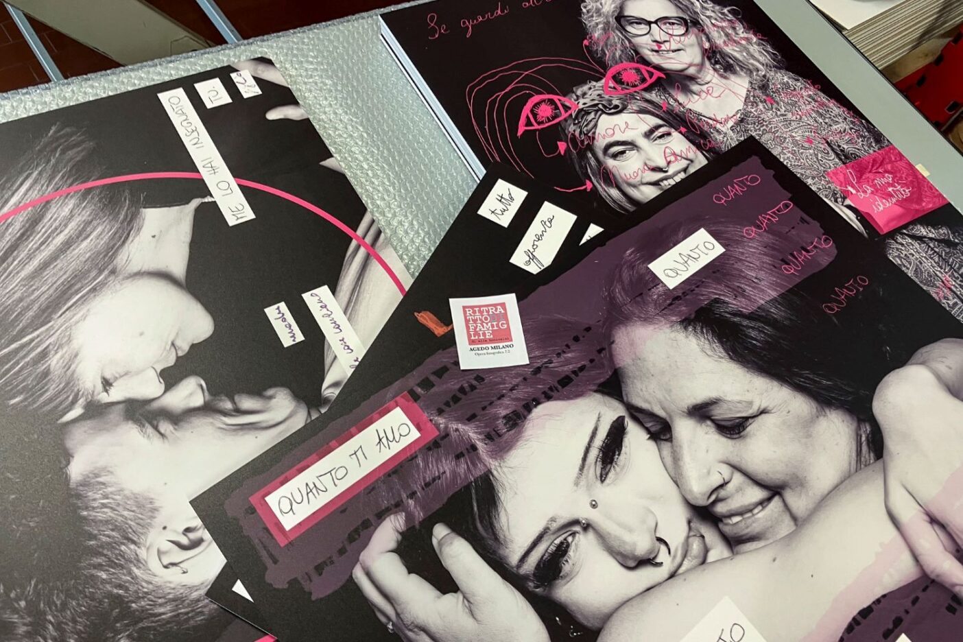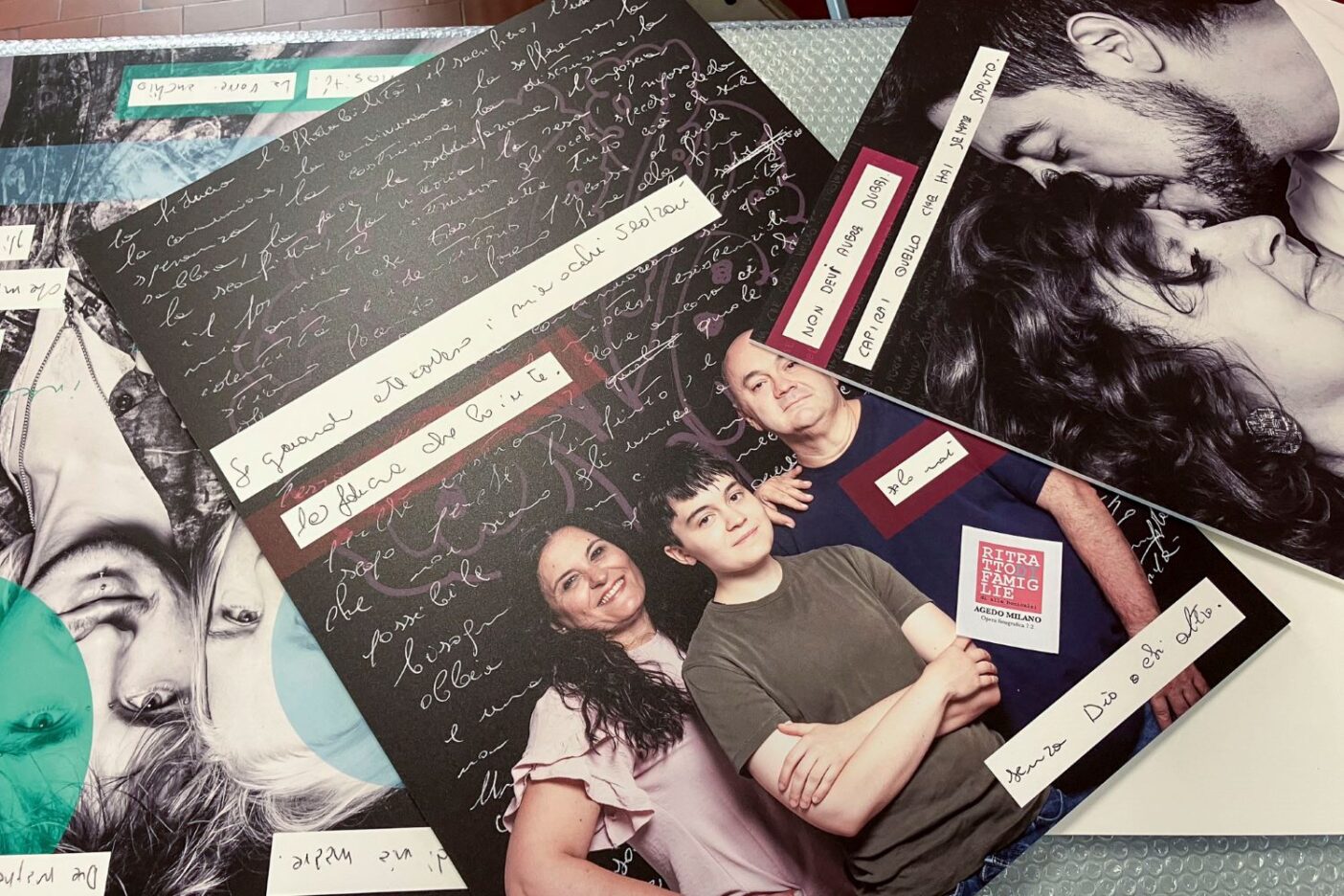 Direi molto bene. Ho visto persone interessate, sorprese e commosse. Ho ricevuto commenti gioiosi e di gratitudine. Ho ricevuto anche ‘consigli’ per rendere ancora più efficace il messaggio. Si potrebbe farne un libro, con la trascrizione dei testi manoscritti, non sempre facili da decodificare… ma anche lì sta il bello. Ci vuole desiderio e impegno, oppure estendere la ricerca e l’esperienza. Non ci sono molti padri presenti, ma i presenti sono fantastici! Sono quasi del tutto assenti fratelli e sorelle, ma si potrebbe ampliare anche allɜ amichɜ, talmente preziosɜ da essere a tutti gli effetti famiglia! Come dice bene Andrea Pigey, altra protagonista della mostra e mamma Agedo: «Siamo molto felici che il progetto abbia finalmente visto la luce e speriamo di riuscire a trasmettere il senso di comunità che lo ha reso possibile. Il risultato, davanti ai nostri occhi, è espresso dai sorrisi delle famiglie coinvolte, dalla complicità e profondità degli sguardi, dalla composizione di esperienze diverse in un unico messaggio di accoglienza e libertà di essere sé stessi. Come un grande patchwork.» Insomma, a me pare di poter dire con certezza che Agedo Milano ha toccato nel vivo sia la propria comunità sia la città. Confidiamo che il significato di questa esperienza si faccia universale e raggiunga davvero più persone possibili.